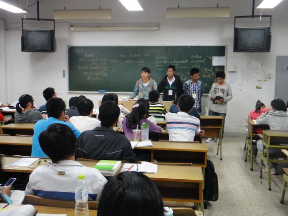 会议结束后,大家一起去了教师院正在上晚自习的各个班级,两位主席团成员向同学们说明了今后晚自习检查的事项,同时曹祺向各班学习委员交代了检查工作。