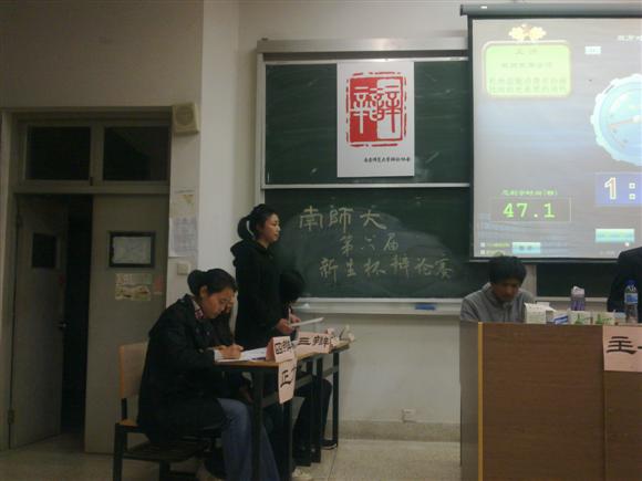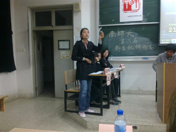 新成立辩论队参加了由校辩协主办的新生杯辩论赛初赛,作为正方,对阵反方生命科学学院。本次辩论赛请来南师大各院的资深辩手担任评委,分别是:教科院的赵晨,法学院的张振宇,外院的刑盖,物科院的段宇,新传院的鲍明飞。辩题是“杜绝盗版应由消费者作为主体还是由政府作为主体”,正反两方一文一理的鲜明对比让众多前来观看的观众都对比赛充满了期待。