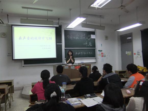 学生会社联中心仙林校区教学楼举行了诵读技巧讲座,此次讲座目的在于提高参加“闪耀新师界——2011年度博彩网址大全