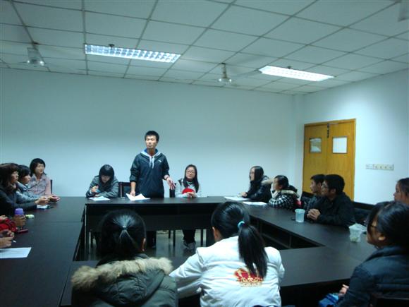 话剧社副社长、文书、宣传、联系等部门同学和社团成员均参与了本次见面会。见面会一开始,大家首先进行了自我介绍,轻松的氛围中大家对彼此有了一定的了解。在接下来的讨论中,社长向全体成员征集社团名称,大家纷纷提出自己的想法和意见,集思广益,最终确定了话剧社的名称为“笙箫”,取其格调高雅,具有民族特色的寓意,承载了大家对话剧社的希望。随后,根据个人在小品、相声、话剧等不同方面的发展意向负责同学将成员们分成了若干组。接下来社团负责同学向同学们征集12月9日话剧比赛的意见,同学们纷纷发表了自己的看法。社长充分发扬了民主精神,调动社团成员们的积极性,使每位成员都有展示自我的舞台,每个人的见解都别出心裁,充分展现了话剧社为大家提供培养业余爱好、娱乐自我、放松心情的平台的宗旨。