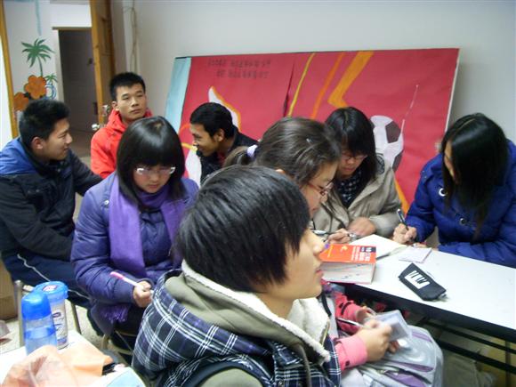 会议结束后中心成员进行节目的排练。生活部准备表演“jingle bells”歌舞。配合着欢快的音乐,生活部成员手舞足蹈,动作轻快,将幽默发挥到极致,这必能带动晚会的气氛。虽然是第一次排练这个舞蹈,但是中心成员配合默契,合作意识强,仅一个小时就已经排练完成。