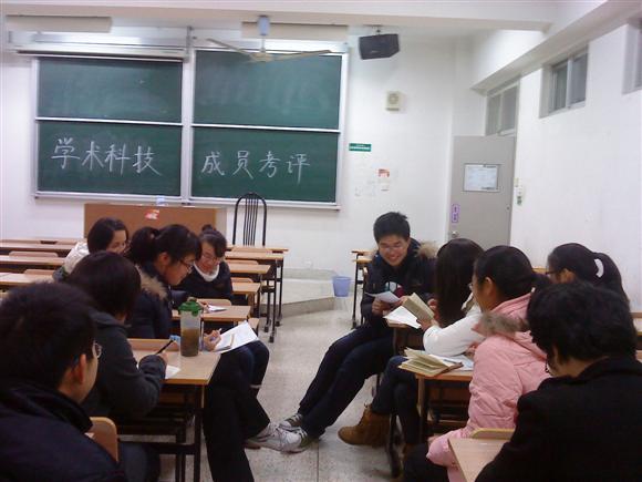 学生会学术科技中心的全体成员在学海楼319教师召开了年终总结考评会议。会议主要围绕这一学期工作总结和中心成员考评展开。会议由学生会轮值主席周翌可同学和学术科技中心主任龚林同学主持,全体成员准时参加。