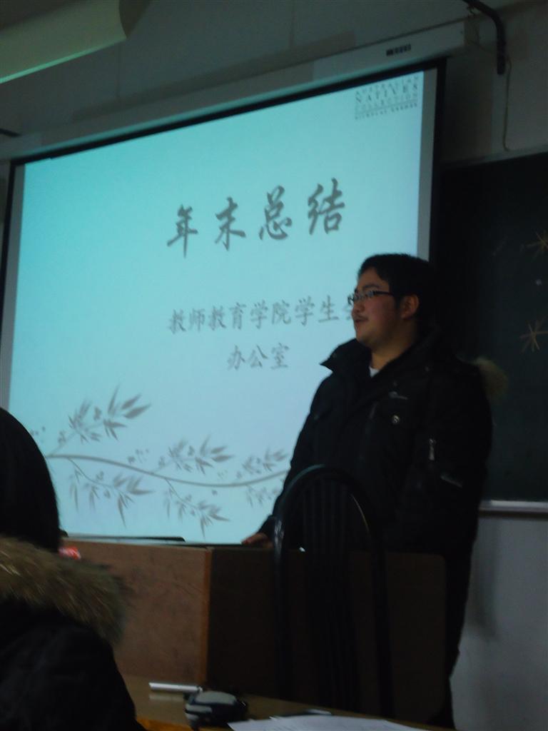 李旻璐同学以一段精美的视频回顾了本学期学生会所举办的活动,一幕幕画面带领同学们再次感受到学生会的团结和不懈努力。在随后简短的工作总结过后,由学生会十个中心的展示环节让大家眼前一亮。展示形式丰富多彩,内容异彩纷呈。精美的PPT从日常工作、组织制度、内部建设等方面详细展示了各中心的工作成果,新闻宣传中心以诗《见与不见》道出了作为学生会一份子的心声——无论身在台前还是幕后,一颗充满热情建设学院的心是不息的力量源泉。办公室的展示简介凝练,体现出办公室作为枢纽环节的速度与效率。学术科技中心以其认真、踏实的态度践行着钻研学术不断进取的宗旨。文体中心主任顾燕君同学将本中心举办的活动比作站牌,在成员的努力下一次次完美到站让大家感受到了团结一致的重要性。大学生发展中心以一段倒计时的动画作为开篇,从成人礼到大学生发展规划调查,周密的策划和完成的网页等设计令大家赞叹连连。生活服务中心更是全员上阵,在主任任琴同学的带领下,每位成员都参与其中,他们在结束时齐声呐喊出“生活服务中心,加油!”,他们的热情和团结感染了每位在场同学。社团管理中心展示了全院各社团风采,并做出了新学年的展望,希望能够做到更好。联络中心以“蝶变”为主题的PPT展示精美细腻,完整呈现出该中心的工作与组织建设,让大家进一步了解了联络中心的职能,明确了与学生会整体的联系。志协和心理气象站也分别展示了本学期的工作并为下学期制定的相应计划,相信他们会令教师院的活动更加丰富多彩。