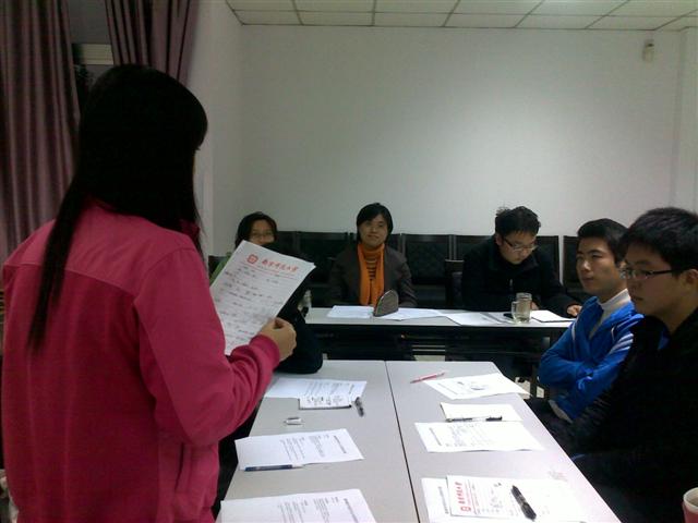 本次面试采取新颖的“无领导小组讨论”的形式,同学们通过抽签的形式随机分为两组。首先,同学们有五分钟的审题时间,审题完毕后,在不确立讨论组织者的状态下,就本院学生会的品牌活动进行自由讨论、各人分工,讨论时间为十五分钟,最终拿出讨论方案,派出代表向主考官进行方案汇报。主考官根据各位同学在讨论中担任的角色和参与积极程度进行评分,进行最终方案的点评。