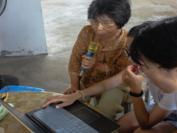 7月30日,小组来到赣榆最西部的班庄镇考察当地方言。因烈日曝晒,行人不愿驻足,小组在寻找发音人的过程中连遭拒绝,但小组成员仍旧坚持不懈,在镇上继续寻找,终于在赵班庄村遇到一位慈祥和善的老奶奶,她体谅实地调研小组在烈日下工作的辛苦,答应协助语料收集的工作,小组得以完成录音。至31日下午,乡镇录音工作基本完成。