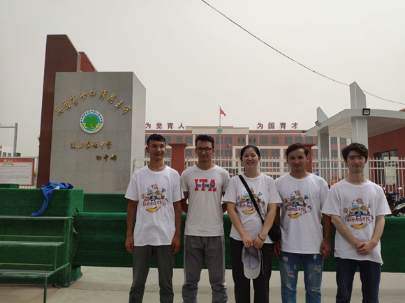 在经历了疲劳的车程后,小队成员到达了目的地皮山,又经历了半小时的车程,终于到达了皮山农场,在当地皮山农场中学的老师陪同下,实地考察了当地的教育现状与环境。在这次参观学校的过程中,小队成员与老师进行了详细的交谈,从一线老师们的口中了解了许多当地学生的学习现状,有益于接下来活动的及时调整和顺利开展。在参观了学校的教学楼与体育馆后,小队成员发现当地的学生使用的教育硬件在一定程度上得到了很大程度的提升,但是师资与学生眼界却一直是当地教育的难题。自2017年以来皮山农场中学一直在不懈地努力,努力引进人才,希望能对这两个问题能有所改善,也希望此次暑期社会实践也能有益于学生眼界的提高。