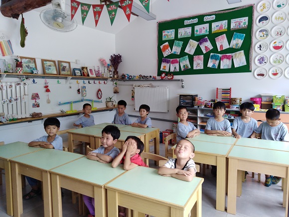 上午,幼儿班的老师正在和小孩子在教室里进行着亲密的互动。小孩子十分的热情与活泼,有的让老师陪她画画,有的让老师陪她做游戏……为了控制住场面,老师让所有的小孩子都安静,乖乖坐在自己的座位上。由于天气十分炎热,老师给每一个小孩子都倒了一杯水。小朋友们喝过水之后,变得安静了许多。