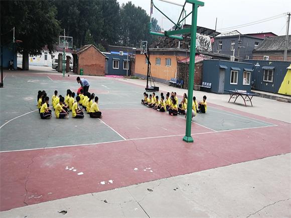 7月19日上午,北京光爱学校操场,邹权(带领军训的中国民航大学学生)及全体需要参加军训的学生进行每天早上1-2节课的军训活动。