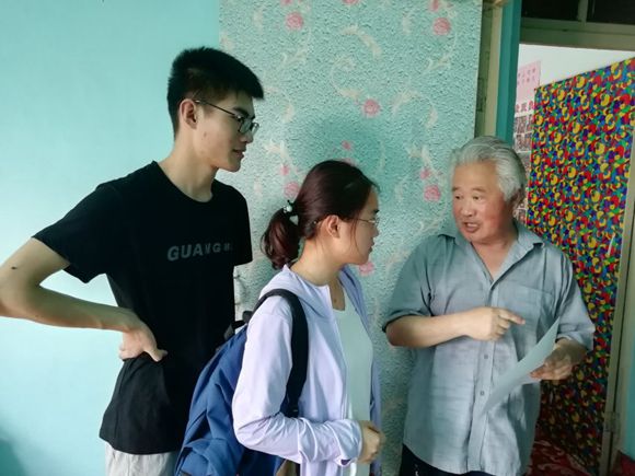上午,外出调查小组一行6人来到了青口镇解放街社区,寻找合适的发音对象。小组成员在当地社区中遇到了2位老人,在向其说明了情况后获其准许进行了语音语料的采集。为了保持调研对象的代表性和广泛性,小组成员在社区中又找到了4位年轻人进行录音采集,最终成功完成了120个语音项的录音任务。除此以外,外出调查小组的成员还成功找到一位有意愿配合完成对单字、词汇、语法及语法的调研任务的老人赵爷爷。今年赵爷爷已经70多岁了,是一名退休教师,他积极配合团队调研同学,同时理解和支持团队研究赣榆方言。社区人员的积极配合和理解为外出调查小组调研活动的顺利进行提供了便利条件。