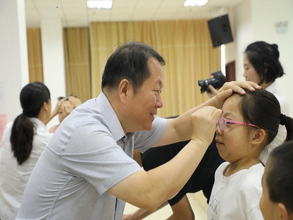 接着进行的是开笔礼环节。开笔礼是一种启蒙教育形式。在古代,这一仪式俗称“破蒙”。古时开笔礼是极为隆重的典礼,对每个读书人来讲都有着重大的意义,被称为“人生四大礼”之一。童蒙之学,始于衣冠。在本环节,老师首先先带营员整理自己的衣冠服饰,期望他们能够“明事理”。接着营员行拜师礼,旨在培养学生尊师的美德。然后是朱砂启智,学生们在袁书记及义工老师的帮助下,都点上了朱砂。营员不仅更加活力,而且都表明了自己的志向。在点朱砂之后,刘书记和营员代表邓柏宸共同上台击鼓,表明营员远大的志向。最后,刘卫江书记为营员书写“人”字,并发表讲话。在讲话中,刘书记感谢了营员和义工教师团队的到来,同时他也为营员送上祝福,希望营员好好表现,从南师大优秀义工教师团队中学到知识和本领。