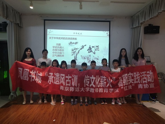 最后,主讲给小朋友们解释了弘扬中华武术的意义:武术,是我们的国术。与“承遗风古训,传文化薪火”活动意义相通的是,凤凰书城小队成员们都在尽力传承我们的文化——属于中国的文化。通过今日细致而有意义的教学,相信小朋友们都能深刻理解今日所学之诗:“学武先做人,忠厚为根本,中华太极门,正气满乾坤”。(社会发展学院: 杨千千)
