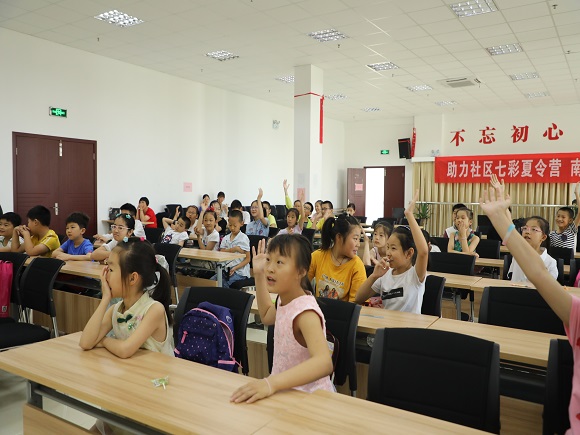 学生主持的“学在南师,爱在课堂”暑期社会实践团队继续开展江阴市蟠龙社区夏令营活动。夏令营已经进行至第四天,但营员和义工的热情仍然不减,积极参与到课程当中。