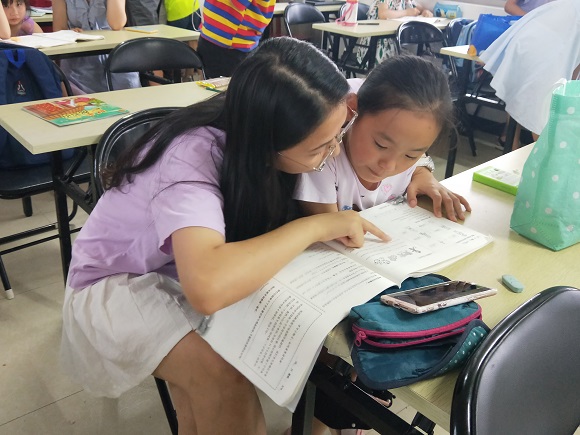 第一项内容是由沈辰洁老师带领大家订正前一天课堂作业本上的错误。沈辰洁老师统一讲解后,老师们对小朋友们进行了一对一辅导。在此之后,新一天的探索开始。