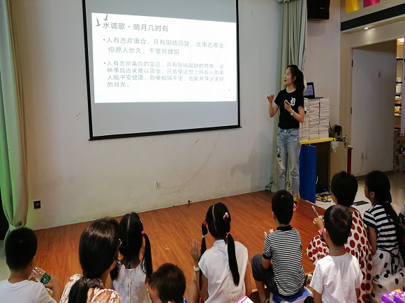 承接上次活动的内容,志愿者从引导孩子们回忆上半年的传统节日开始,通过精美的配图和动画,为孩子们讲述了嫦娥奔月的故事,就此引入对中秋节的讲解。一问到中秋节的习俗,孩子们都能迅速地回答出赏月,吃月饼等家喻户晓的习俗。但对于更细致的问题,比如月饼花纹象征的意义等,孩子们就比较陌生了,于是志愿者用尽量简明易懂的语言解释了这些问题,让孩子们有了更深刻的理解。第二部分是对于重阳节的讲解,志愿者另辟蹊径,引导孩子们讲述和爷爷奶奶之间的故事,借此增强了孩子们对重阳节“敬老”内涵的理解。最后是对除夕的讲解,志愿者采用了先看动画后提问的方式,令人惊喜的是,孩子们不仅回答出了问题,还积极主动地为大家讲述了自己所知道的除夕节。在本次活动的结尾,志愿者带着孩子复习了每个节日的来源、风俗以及相关诗词等。