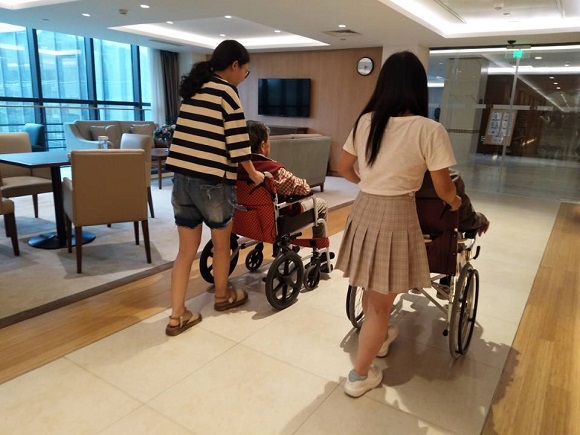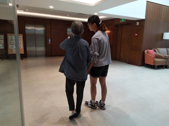 此次活动的主要内容即是陪伴老人。因为天气原因,风雨阻塞,所以志愿者们都在室内开展活动。这次仍旧同往常一样,志愿者们被分成了三批,分别前往一楼、二楼和三楼陪伴各位爷爷奶奶。王缘同学在一楼与夏爷爷作伴,夏爷爷精通二胡,技艺了得,爷爷教志愿者拉二胡,虽然志愿者拉得不好,但是夏爷爷仍旧亲切地鼓励,告诫志愿者,要坚持才会成功。其余二楼和三楼的志愿者则陪着爷爷奶奶在欧葆庭内部多多走动,陪他们聊天休憩。如张夏悦同学和李姿同学仔细聆听颜奶奶自己和家人的故事,谨遵奶奶的教诲要保护眼睛,看手机需适量;如田静怡同学则给奶奶朗诵《小王子》,陪着奶奶散步;如陈文君同学搀着江奶奶活动,一面走,一面同奶奶闲聊,奶奶也给她讲述了自己曾经做教师的经历;如方文文同学,和奶奶一起观看《彭德怀元帅》之时,在看到奶奶泪光盈盈的时候,也不禁心潮澎湃。