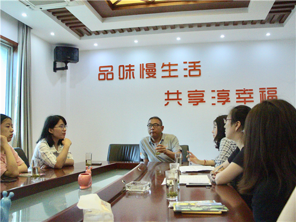 调研团队首先在游客中心会议室与常总进行了座谈。座谈会上,团队成员们结合亲身经历,对在高淳桠溪镇发展过程中所遇到的瓶颈提出了自己的想法和疑问,负责人常总有问必答,条理清晰,详细解答了队员们的问题,并与队员进行深入了交流和探讨。