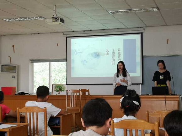 最后,由夏令营的嘉宾老师——来自南师大汉语言文学师范班的仲欣然和王砚凝,带小朋友们赏析了《孟浩然诗二首》中诗人丰富而又复杂的情感,领略故事的意蕴。