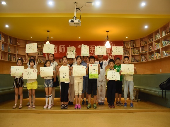 第二节课是钱怡婷同学的“绘画课”。这节课教授学生们绘画的是国宝——熊猫。这群留守儿童们对熊猫都非常有兴趣,大胆尝试绘画,积极构思画作结构。以画作形式展现对国宝的喜爱,对祖国的热爱,对祖国千万事物的崇敬之情。