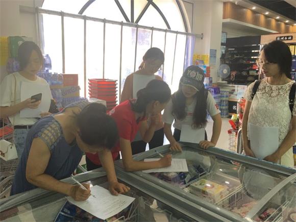 首先,启中实践小组四人在街道上对一些商家进行走访调查,发放问卷。从店主、员工,到路过的行人和进店的消费者,大部分受访者都积极配合,认真填写。下午,启中实践小组四人在滨海新村居委会的帮助下,拜访了滨海新村内的部分住户,向他们表明来意,并发放调查问卷,住户们都积极配合完成了问卷调查。最后,启中实践小组重新返回上午走访的商家,将那些因员工较忙没有及时填写而暂放在店内的问卷进行回收,大部分的问卷员工都已经抽空填写完毕。