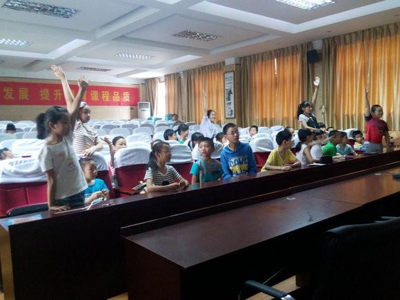 在前五天愉快的学习时光后,志愿者组织同学们对所学知识进行了回顾。今天的课题是“智慧碰碰碰”。志愿者重新为小朋友们分组,新的队友带来新的活力。活动开始是抢答环节。随着“三,二,一”令人紧张的倒计时,小朋友们积极踊跃地举手回答问题,为自己的小组加分。然后是“看图回答”的环节。每组派出两个代表,看屏幕上的图片回答问题。活动顺利地进行,同组的两名代表手牵着手,相互支持,相互帮助,为自己的小组作出贡献。最后是“选题作战”环节。由前两轮得分最高的小组开始选择不同分值、不同难度的题,答对问题加分,答错扣分。在这一轮里,第二组脱颖而出,成为得分最高的小组。但是也有小组因为答不出题目而被扣分,十分可惜。