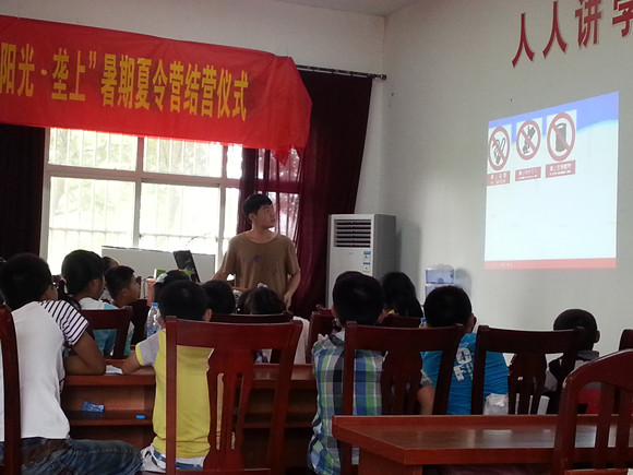 下午的课一开始就牢牢地抓住了小朋友们的眼球。这节课的内容是鉴别优劣食品和安全教育。首先,作为老师的志愿者龚武坤在大屏幕上播放各种食品的图片并通过与小朋友的互动仔细讲解了该如何鉴别。接下来的安全教育分为防水、防火、防电三部分,每部分通过生动的ppt和视频向小朋友教授安全知识,整个学习过程小朋友们兴趣很足,学习得也很快。最后以小组为单位的知识竞赛环节更是将整个课堂气氛推向了高潮,这些问题不仅检验了刚才的教学情况,加强了小朋友的团队意识,而且将实用的安全知识更好地深入了小朋友的心里。