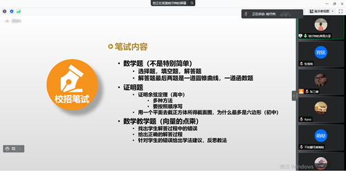数学专场中,学科教学(数学)专业的钱圩烨学姐结合自己的备考和应聘经验,谈到数学笔试题量大时间短、题型灵活多样的情况,建议备考过程中多刷综合卷和专题,温习教材、教参和课标,以及关注新教材相关内容。校招笔试结束后就要着手准备面试,建议大家熟悉教材的前后顺序以及其中重要的思维方法,明确每一节课的教学目标和重难点,便于教学设计和答辩。另外,当答辩内容较多时,可以分条陈述,适当结合实例进行解说。分享结束后,学姐耐心地解答了大家的疑问。