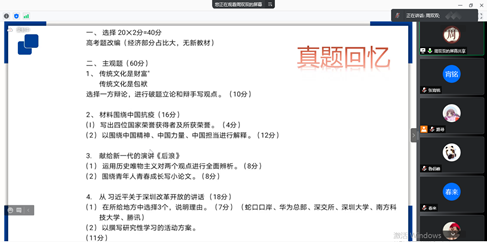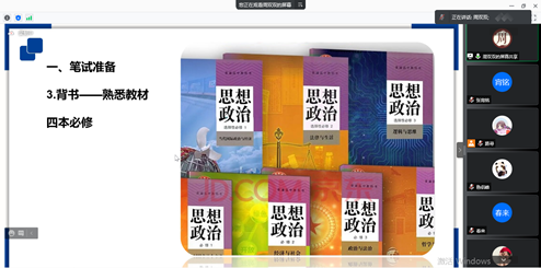 思政专场中,学科教学(思政)专业的周双双学姐首先分析了去年市统考真题的考察点,强调选择题要控制时间,主观题要尽量写完整。之后学姐详细分享了自己去年的备考过程,提醒学弟学妹们准备笔试时要重点关注课程标准、高考真题,熟悉教材和教育时政热点话题,准备结构化面试时要训练自己清晰的逻辑思维,课堂教学环节要保证知识结构顺畅不出错。最后学姐建议同学们平时重视积累,形成自己的教学设计框架模板和说课模板。
