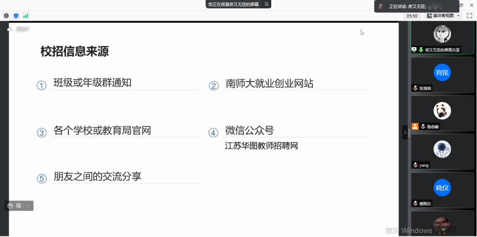 成功举办校招经验分享会。本次分享会邀请了六位成功入职南京各大重点中学的2021届优秀学子线上分享自己的求职经验。