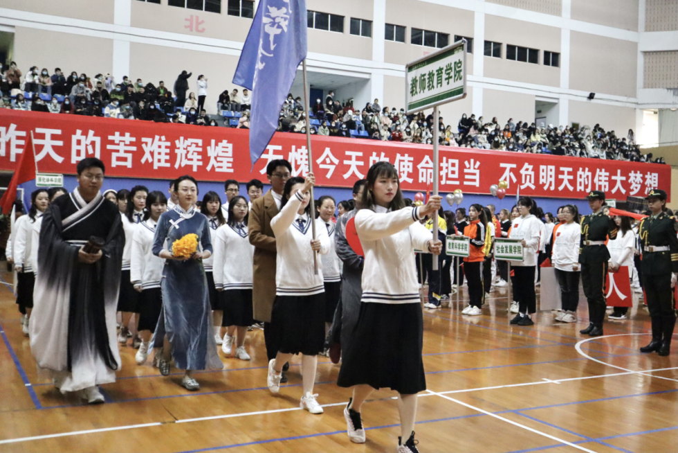 教师院师生对本次校运会投入了极大的激情,同学们在开幕式方阵以及各种比赛中都有不俗的表现,以“青春之我”、“奋斗之我”喊出了“请党放心、强国有我”的豪迈誓言。