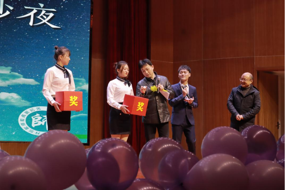 伴随着淮阴师范学院联培同学为我们带来的视频惊喜——小提琴独奏,晚会进入到第一轮抽奖环节,李成林、解凯彬两位老师上台抽取三等奖,并为中奖同学颁奖,现场气氛达到了高潮。