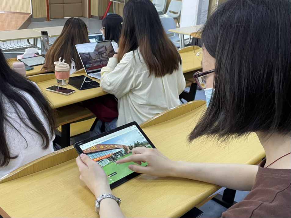 7月1日至9日,宣讲团依托学校智能平台资源,先后开展七次专题党史宣讲活动。团队成员利用现代化数字技术优化党史学习教育实践,积极引入新理念、新方法、新载体促党史学习教育高效化、便捷化、精准化,在虚拟仿真平台以及智能工具的支持下,分别开展了主题为“中国共产党革命精神虚拟仿真实践教学”、“红军长征之四渡赤水虚拟仿真实验”、“新时代我国社会主要矛盾仿真实验”、“中共早期在武汉探索革命道路的艰辛历程虚拟仿真实践”、“美丽中国‘黄河流碧水,赤地变青山’虚拟仿真实验”、“新中国从这里走来——西柏坡精神的内涵和时代价值”和“中国革命新道路的开辟之旅虚拟仿真实验”的系列党课。在七次专题宣讲中,宣讲团成员在进行理论宣讲的同时,积极鼓励并指导参与者使用配备的智能平板电脑进行实践锻炼,在党史学习教育中充分激发参与者自主学习的能动性、积极性,通过生动的虚拟仿真实验与教学重塑参与者学习体验。参与者在实践活动中自发形成学习小组,互相讨论,自主探索,分享并传递红色知识,充分展现了他们对数字化党史学习教育的浓厚兴趣与饱满热情。