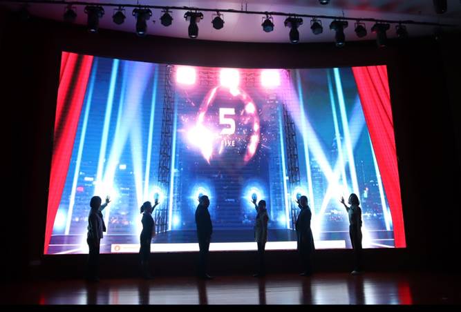 在全场欢呼中,罗秦洋、王蕾、郭茂彭、张雨田四位主持人缓步登台,向在场观众介绍了晚会流程,宣布晚会正式开始。