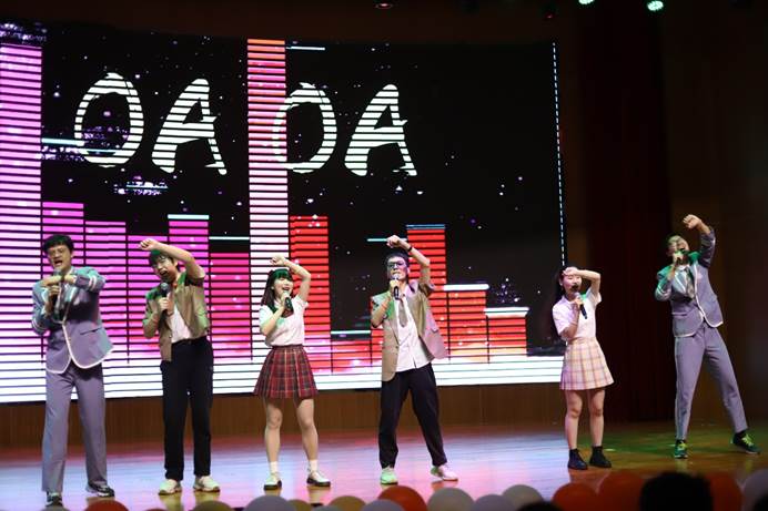 抽奖结束,节目精彩继续。学科语文班的同学带来情景剧《后宫甄嬛传之五育融合》,师院学子们努力学习积极生活的片段被写进故事中,配合同学们丝丝入扣、妙趣横生的表演,引起现场同学们的掌声与共鸣。学科化学班和学科物理班的同学带来朗诵《要素主义》,幽默诙谐的台词结合当下网络流行热梗向同学们传达了当代青年应当树立的正确价值观。学科化学班和物理班的同学一齐演唱歌曲《OAOA》,激昂热烈的歌声引得现场观众一同放声高唱。