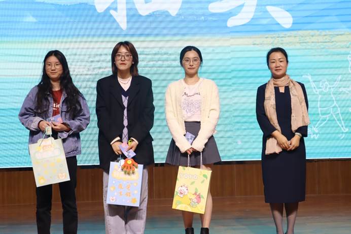 接着进行本场晚会第二次游戏抽奖环节,杨霞老师上台抽取二等奖并为同学们颁奖,老师希望同学们永远热爱教师这一职业。黄菊香书记上台抽取一等奖并致辞,她祝愿大家在往后的岁月闪闪发光、熠熠生辉,心怀热忱,传承教师理想,续写师院崭新篇章,再一次点燃全场气氛。