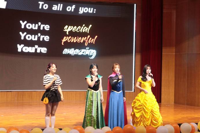 学科生物班的同学带来的影子剧《我在南师挺好的》,形式新颖,内容幽默,展示了同学们读研以来在南师温馨快乐的生活,再现了许多美好的瞬间。学科英语班的四位同学为电影《无敌破坏王》片段配音,她们专业的水平和全情投入的表演引得全场热烈掌声。