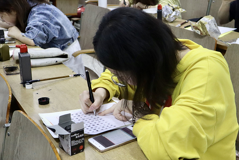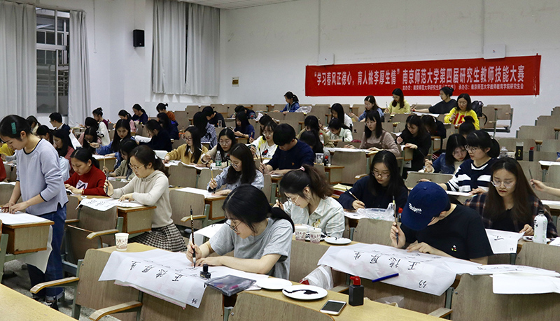 2019年4月19日晚上,“学习春风正德心,育人桃李厚生情”南京师范大学第四届研究生教师技能大赛三笔字比赛在南京师范大学仙林校区学明楼3-4层圆满举办。来自南师大全体有志于从事于教师职业的研究生参加了这次比赛,本次比赛要求全体参赛人员在规定时间内,分别完成钢笔字、毛笔字、粉笔字的书写,书写完成后由工作人员收集,最后三组比赛作品统一交给评委打分。