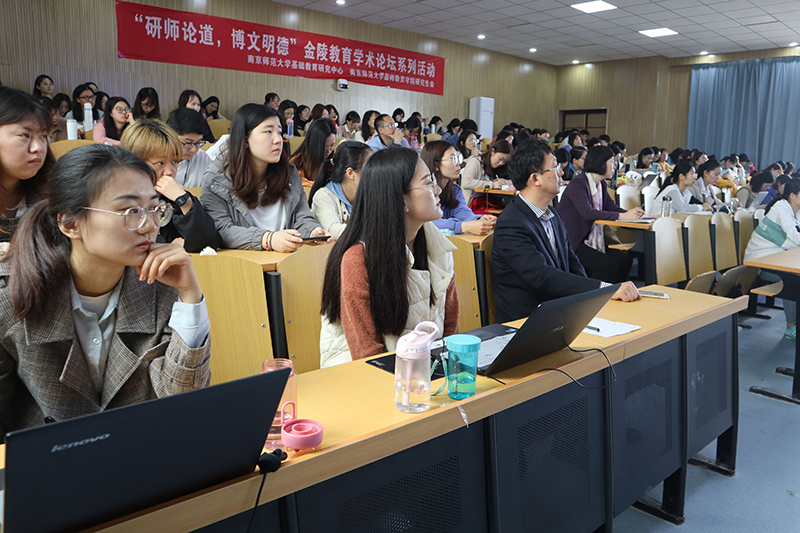 承办的“研师论道,博文明德”金陵教育学术论坛之《未来,在改变中生长》专题报告会在南京师范大学仙林校区学明楼501智慧教室成功举办。本次报告会的主讲人为正高级教师、江苏省人民教育家培养对象、南京市基础教育名家闫勤老师。教师院副教授汤振刚老师和2018级研究生参加了此次报告会。