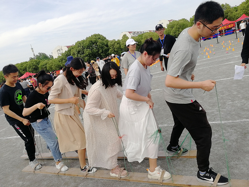 “同舟共济”比赛要求6名参赛队员手拿2块竹筏站于起跑线后,裁判发令后,6名队员同时站在一块竹筏上,依次交替向前行进。以最后一名队员通过终点并将竹筏收回为计时结束,用时少者名次列前。辅导员王鑫老师和高晓月老师参加了这一活动,在比赛过程中老师与同学们配合默契,稳步前进,增进了老师和研究生们的感情。