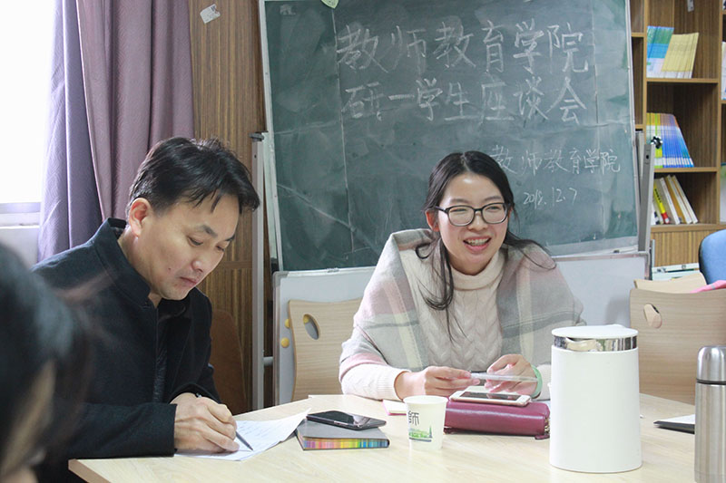 书记刘更生老师、教师院辅导员王鑫老师以及来自教师院研一年级各专业十五名学生代表。