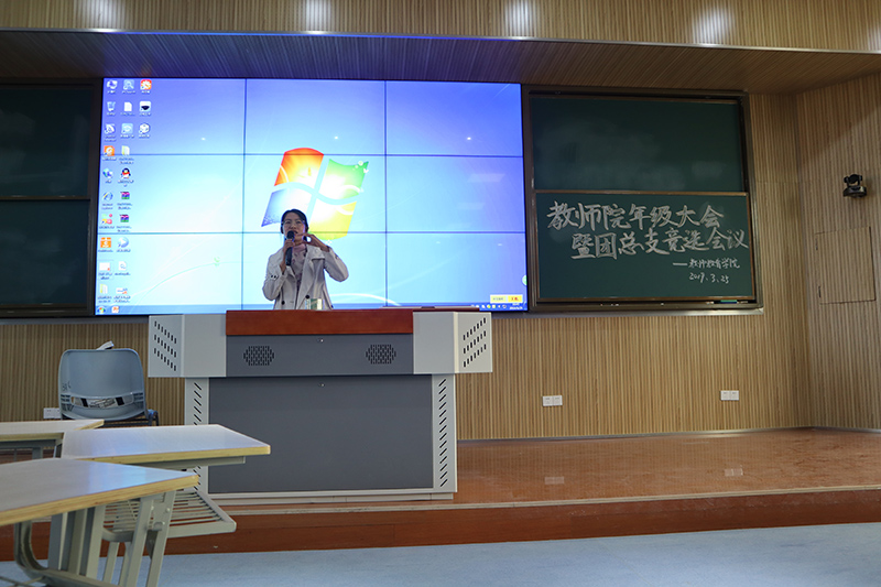 紧接着王老师给全体学生介绍了本学期的工作计划和活动安排,包括师范生技能大赛、“金陵教育学术论坛”、“研师论道”学术沙龙月活动等等,目的是为了营造学术氛围,端正学术态度,提高师范生的专业知识和专业技能。