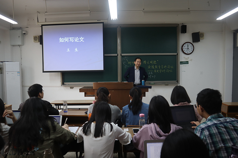 举办的“研师论道,博文明德”金陵教育学术论坛之历史学科论坛专题讲座在南师大仙林校区学正楼304教室圆满举行。本次讲座邀请到了江苏省中学特级教师王生老师,应同学们的论文写作需要,王生老师本次讲座的主题为“事事待研究,处处有课题——关于论文的选题”。博彩网址大全