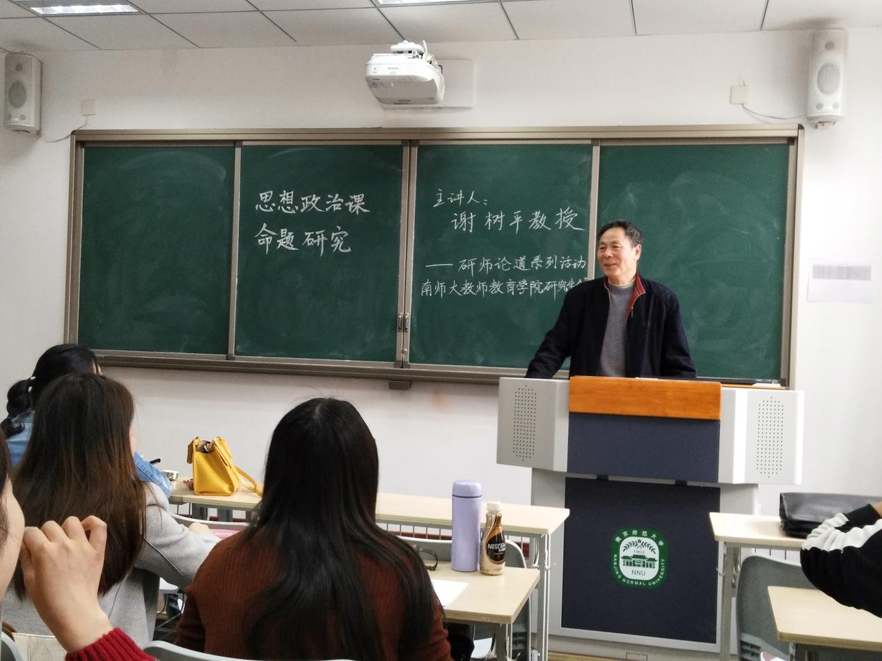 “善学求知,研师论道”系列活动之子活动高中思想政治学术沙龙活动在随园校区信息楼成功举办。本次学术沙龙活动邀请到南京师范大学马克思主义学院的谢树平教授,沙龙主题是高中思想政治命题相关研究。本次活动由学科教学(思想政治)班魏鸣同学主持,活动形式以师生共同探讨为主。
