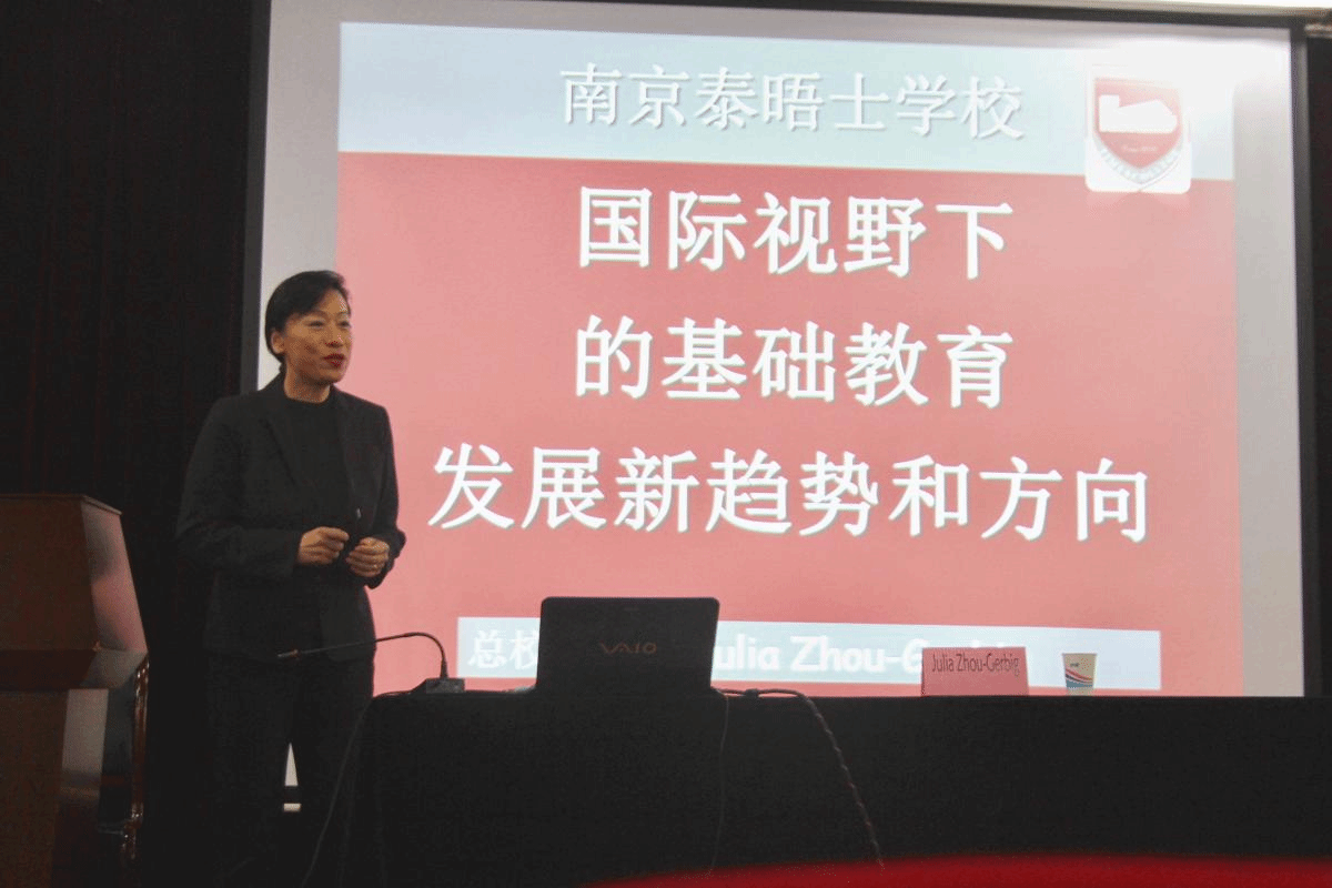 邀请南京泰晤士国际学校中方校长Julia Zhou-Gerbig在随园校区逸夫楼报告厅作“国际视野下的基础教育发展趋势”学术讲座,本次讲座由教师院党委副书记刘更生主持,研究生辅导员王鑫老师、王瀛老师也到场参加。