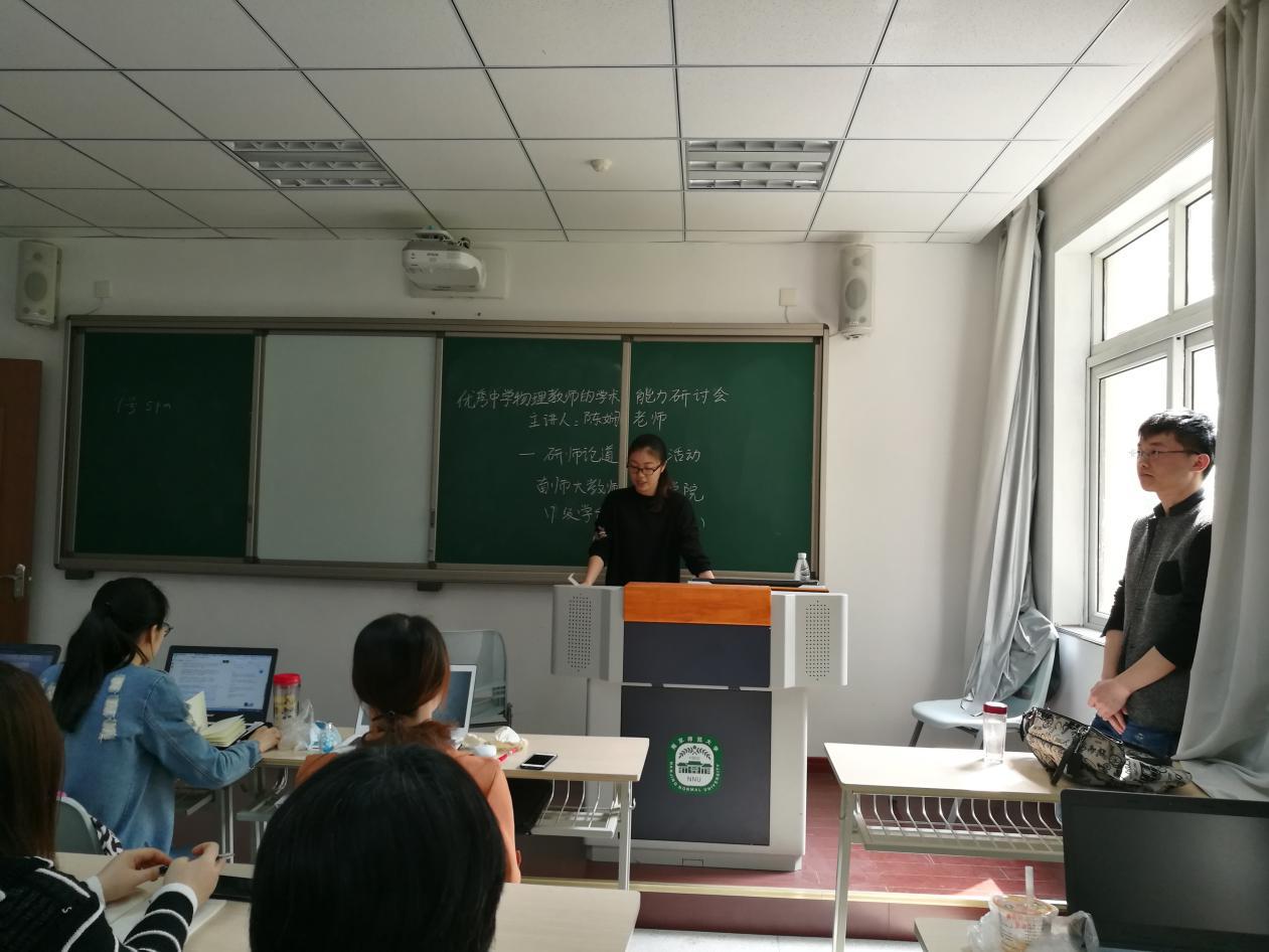 “善学求知,研师论道”系列活动之子活动优秀中学物理教师的学术能力培养研讨会学术沙龙活动在随园校区信息楼209成功举办。本次学术沙龙活动邀请到南京师范大学硕士生导师学科教学系副主任陈娴教授,沙龙主题是优秀中学物理教师的学术能力培养研讨会。本次活动由学科教学(物理)班同学嵇桢主持,活动形式以师生共同探讨为主。