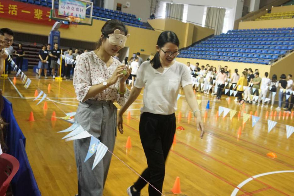 “指点迷津”比赛要求每院派出两组师生参加,学生蒙住双眼,导师以言语引导其绕过赛道中的障碍物并完成相关任务,最先到达目的地者胜出。副书记刘更生老师与辅导员王鑫老师都参加了这一活动。在比赛过程中,老师们以准确的指令引导同学前进,并不断鼓励其克服对黑暗的恐惧,迈出坚定的步伐,师生配合默契,最终获得较好的成绩。