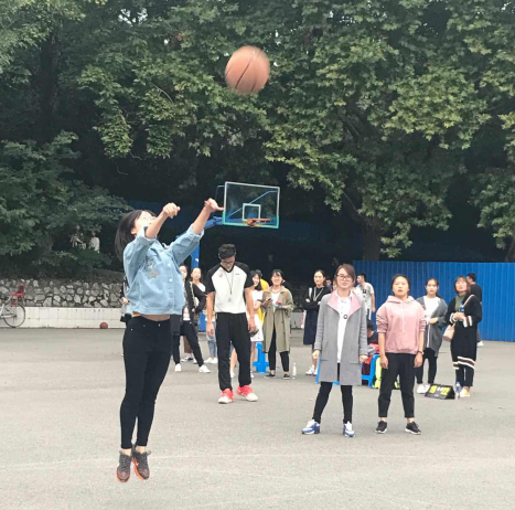 中场休息时间,迎来了此次篮球赛的一大特色——女子投篮。教师院和教科院各派3名队员进行投篮,投中一球以一分计入总比分。各队员也是巾帼不让须眉,投球“快、准、稳”。