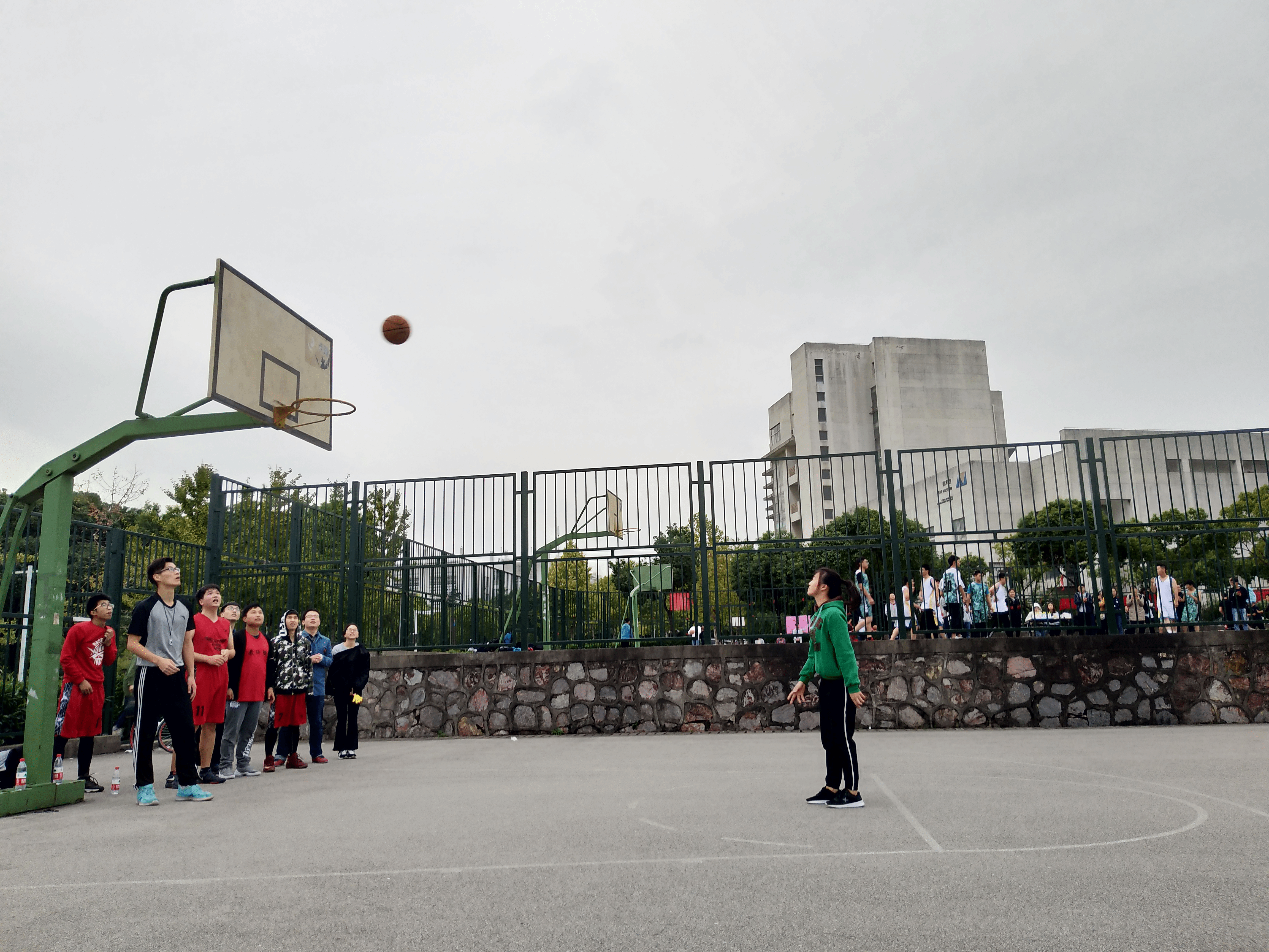 在中场休息时,女子投篮开始了。教师院的女生们巾帼不让须眉,虽然落后了对方两分,但是投进篮筐的两个球为我方队员鼓舞了士气,一时间欢呼声和掌声不断。