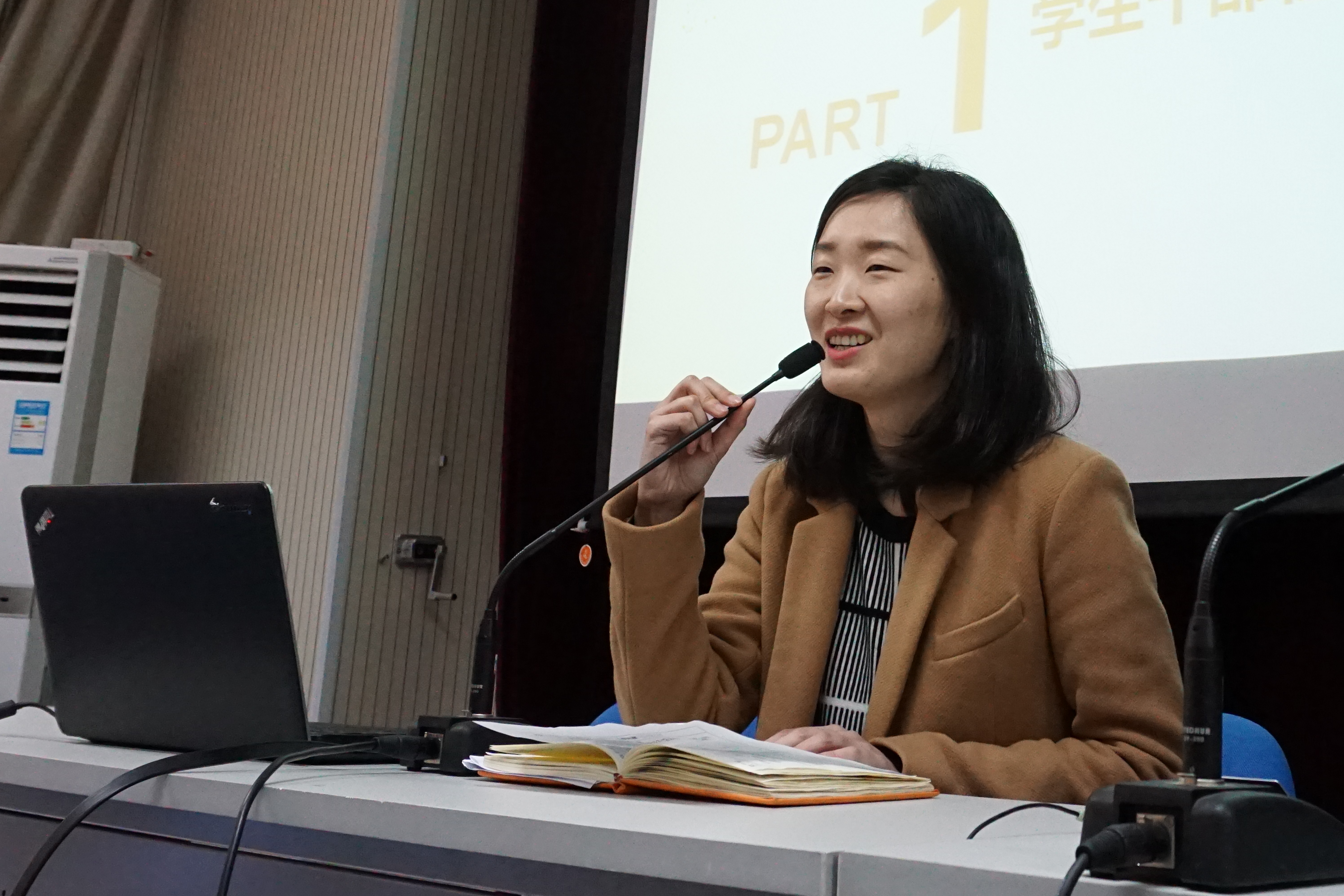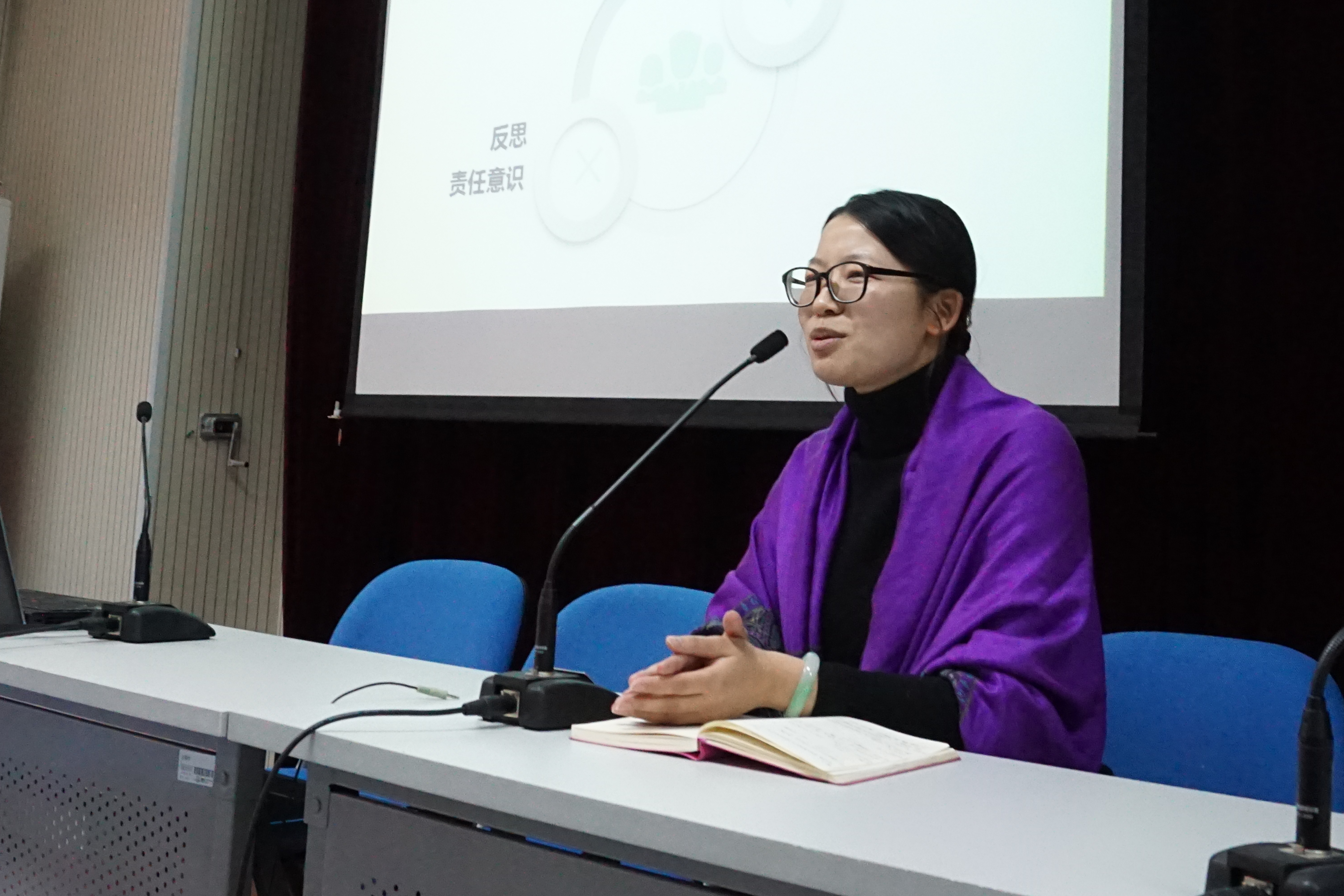 接下来,院研会主席孙洁同学对研会上学期工作进行了回顾与总结。在全体成员的辛勤付出之下,研会成功开展了包括学术竞赛、文娱活动、社会实践活动在内的一系列活动,如“优秀学子宣讲会”、“研路师心”院迎新晚会、“四点钟课堂”志愿服务活动等。这些活动不仅丰富了同学们的业余生活,也锻炼了其实践创新能力,受到了同学、老师及实践活动单位的一致好评。