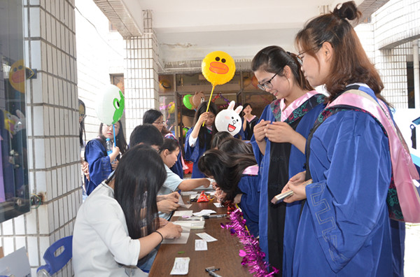 离别不言伤,青春不毕业。本次毕业纪念活动一改往日庄重严肃的形式,增添了游园会项目,使毕业生在欢乐和谐的氛围中重温校园点滴,感恩老师与母校,留下难忘的回忆。无论是许诺给未来的明信片上对着未来的自己写下的话语,还是执起粉笔在小黑板上重新温习的文字,无论是塑封书签里那张十年之约的请假条,还是创意学生证拍照的KT板,又或是答题、套圈、汉服照相,所有的一切都使毕业生们感动不已。