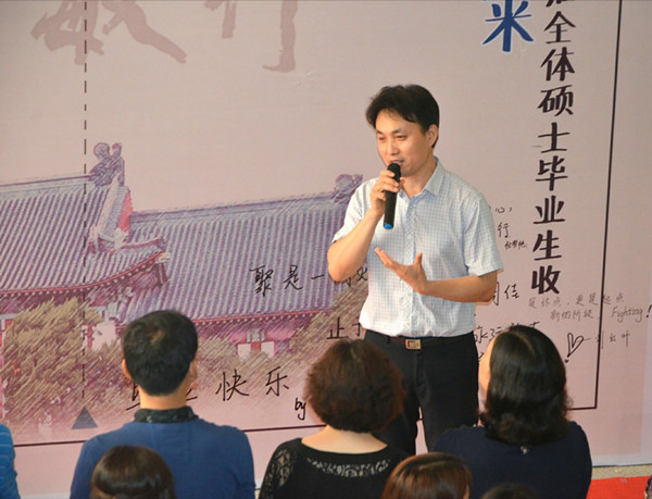 院长杨作东老师向全体毕业生送上真挚、感人的寄语。他高度赞赏了毕业生在校期间所取得的学术成果、科研成就和工作成绩,深情回忆了研究生们与学院的共同成长。临别之际,他以师长和朋友的身份向毕业生赠言,希望大家:第一,心胸开阔,志存高远;第二,勤奋学习,求实创新;第三,正视挫折,勇于挑战;第四,心系母校,常回家看看。杨院长的讲话语重情深,感人肺腑,其中饱含着对于毕业生的期望和祝愿,赢得了在场毕业生的阵阵掌声。